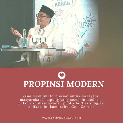 “Kami akan memiliki terobosan untuk melayani masyarakat Lampung yang semakin modern melalui aplikasi layanan publik berbasis digital. Aplikasi ini kami sebut Go 4 service,”kata Jajuli yang kemudian disusul dengan tayangan video penjelasan aplikasi digital tersebut.(Tim).