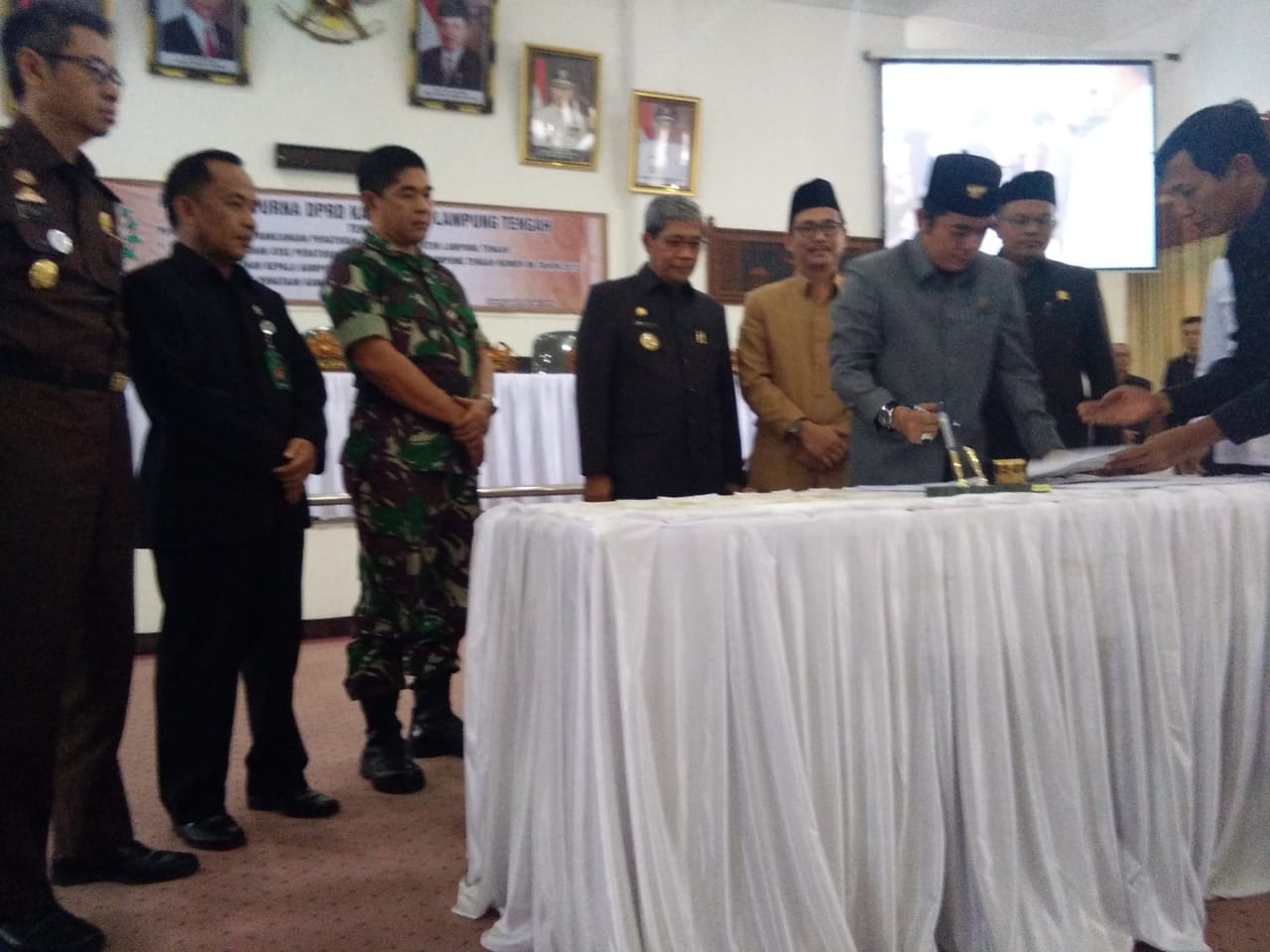 Rapat paripurna dipimpin langsung Ketua DPRD Lamteng Ahmad Junaidi Sunardi dan dihadiri Plt Bupati Lampung Tengah Loekman Djoyosoemarto. Dalam sambutannya, Loekman mengucapkan terima kasih kepada DPRD khususnya Bapemperda, yang telah membahas Raperda usulan Pemkab dan masing-masing fraksi yang telah menyampaikan pandangan umum terhadap Raperda tentang Perubahan Atas Perda Nomor 06 Tahun 2015 tentang Pemilihan Kepala Kampung dan Raperda tentang Penataan Kampung.