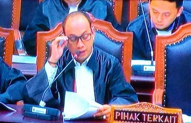 KARYANASIONAL.COM, Jakarta, – Kuasa hukum Arinal Djunaidi – Chusnunia menyampaikan empat poin keterangan dalam sidang perselisihan hasil pemilihan Gubernur dan Wakil Gubernur Lampung 2018 dengan agenda keterangan termohon (KPU Lampung) dan pihak terkait di Mahkamah Konstitusi, Selasa, (31/2018)
