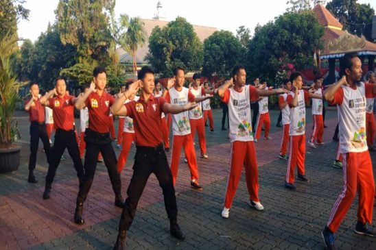 KARYANASIONAL.COM, BANDAR LAMPUNG-Menyambut perhelatan Asian Games 2018 ribuan narapidana yang diwakili sekitar 30 warga binaan serta puluhan sipir Lapas Rajabasa, mengikuti pemecahan rekor Muri Dunia (Guinnes World Record) senam Poco-Poco 2018, dilapangan Lembaga Pemasyarakatan (Lapas) Kelas I Rajabasa, Bandarlampung, Minggu (5/8)/2018).