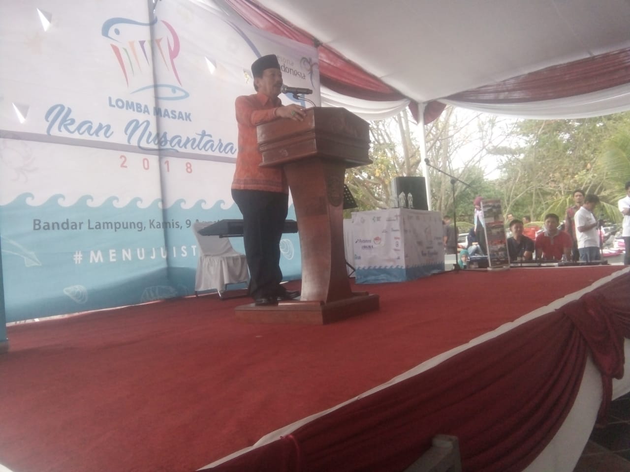 KARYANASIONAL.COM, Bandar Lampung_ Walikota Bandarlampung Herman HN mengajak warganya untuk gemar makan ikan, hal ini disampaikan pada saat sambutan dalam rangka Lomba Masak Ikan Nusantara di Taman Duta Wisata Lampung Kamis, ( 9/8/2018 ).