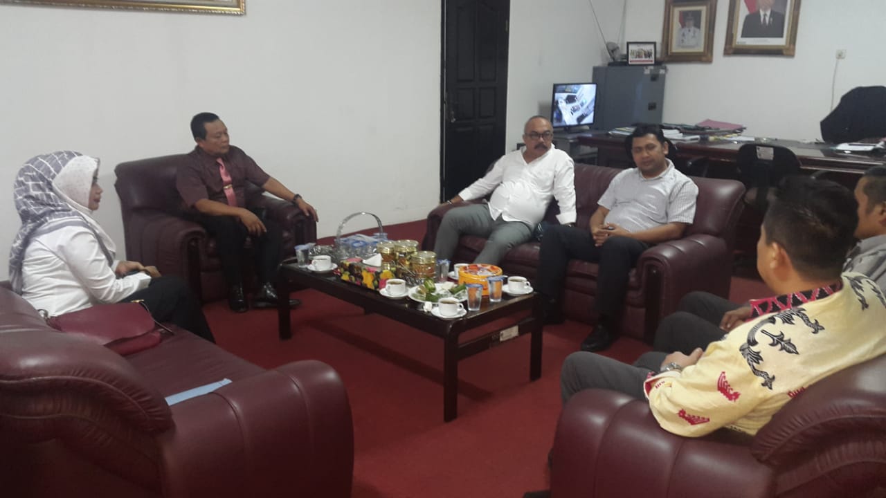 KARYANASIONAL.COM,Bandarlampung_ Kepala Dinas Sosial Provinsi Lampung, Sumarju Saeni menerima kunjungan Tenaga Ahli Penanganan Fakirmiskin Kemensos RI, Indra Jaya didampingi oleh Pengurus Koperasi Jaringan Masyarakat Indonesia Sejahtera (KJMIS) Chrisny dan Kabag Keuangan Dirjen PFM, Sugiarto (16/08/2018) di ruang kerjanya.
