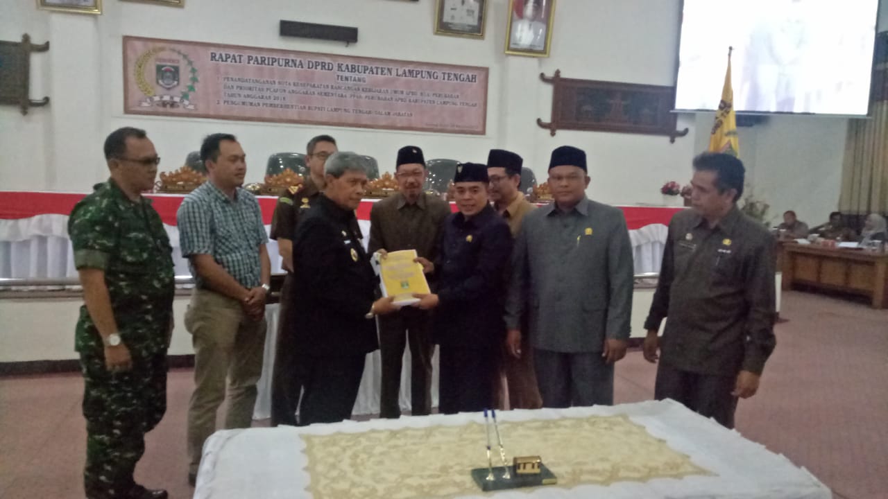 KARYANASIONAL.COM, LAMPUNG TENGAH-Dewan Perwakilan Rakyat Daerah Kabupaten Lampung Tengah (DPRD Lamteng) menggelar Rapat Paripurna TentangPenandatangan Nota Kesepakatan Kebijakan Umum Anggaran (KUA) dan Prioritas Plafon Anggaran Sementara (PPAS), APBD Perubahan Tahun Anggaran 2018, Selasa (28/08/2018).