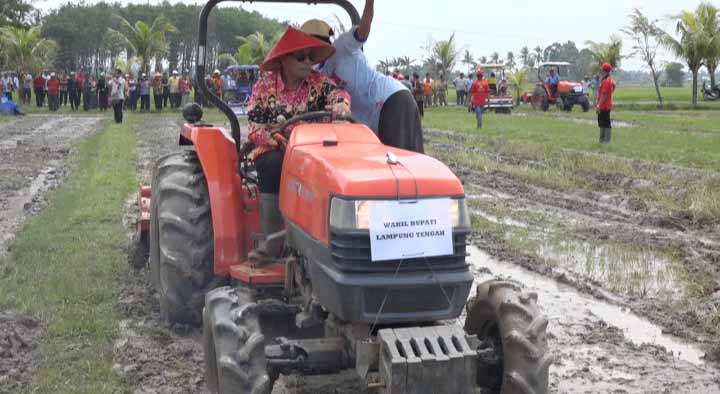 Pantauan Karyanasional. Com dilokasi, Wakil Bupati Loekman Djoyosoemarto bersama Ir. Susanto dan Kadis Pertanian Lampung Tengah Rusmadi, mengemudikan kendaraan Traktor sebagai simbol Percepatan Pengolahan Tanah. Kemudian kegiatan dilanjutkan dengan Penanaman Padi bersama.