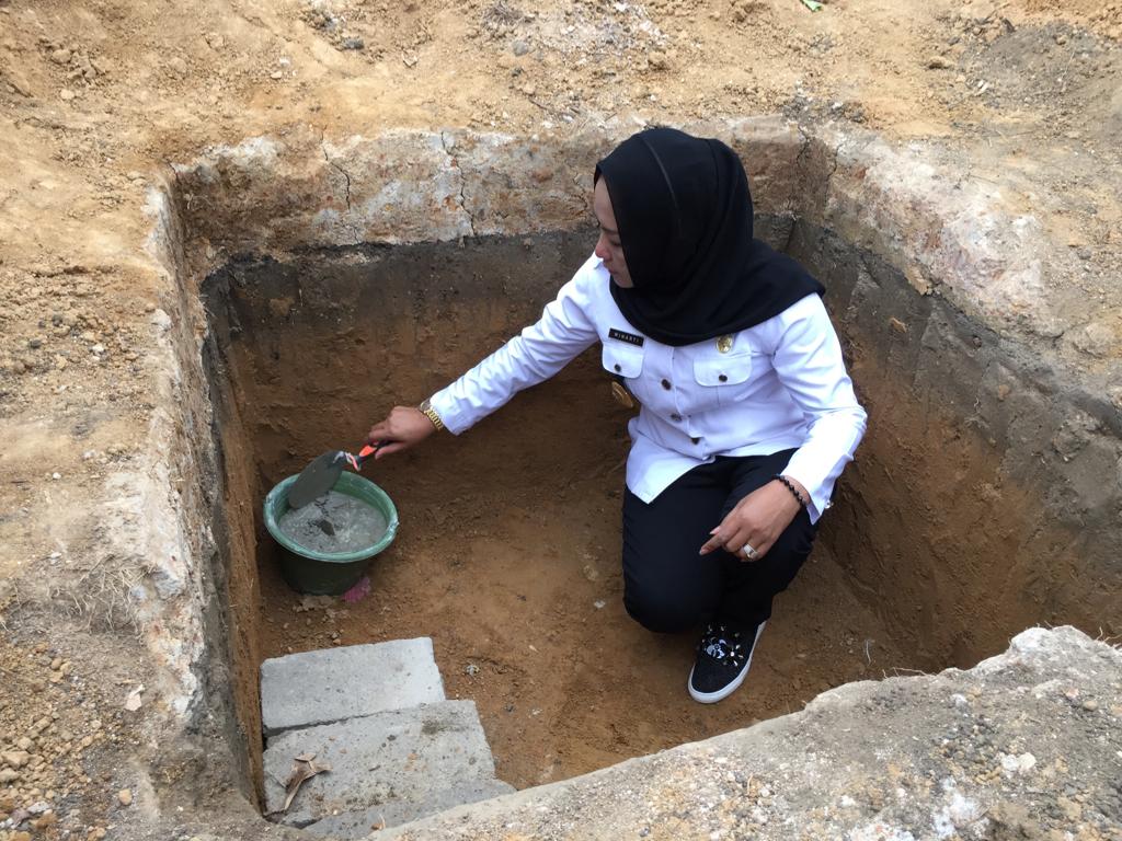 KARYANASIONAL.COM,Tulang Bawang_ Ibu Bupati Tulangbawang Bunda Hj. Winarti SE MH, melakukan peletakan batu pertama pembangunan Masjid Pondok Pesantren Al-Munfarijah yang berada di Dusun Tulung Bohow, Bujung Tenuk, Kecamatan Menggala, Rabu, (19/9/2018).