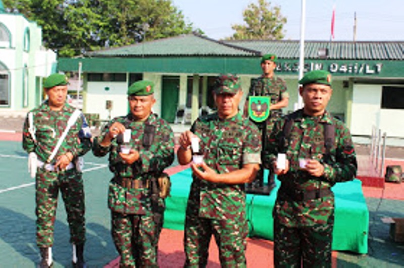 KARYANASIONAL.COM, METRO—Usai melaksanakan apel pagi Dandim 0411/LT, Letkol Czi Burhannudin,S.E, M.Si, mendadak memerintahkan anggotanya untuk berkumpul di Lapangan Apel Makodim 0411/LT, dibantu anggota Unit Intel, Provost serta Tim Kesehatan Kodim 0411/LT, dengan sigap menyusun meja panjang dan mengeluarkan gelas-gelas plastik kosong bersih, beberapa Provost bersama Anggota Unit Intel tampak mulai berdiri di depan kamar kecil Makodim yang terletak di depan Lapangan Apel.