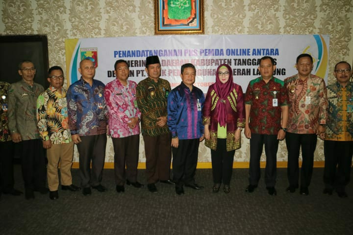 KARYANASIONAL.COM -KOTAAGUNG_ Pemerintah Kabupaten (Pemkab) Tangggamus jalin kerjasama penggunaan Aplikasi Pemda online dengan Bank Lampung. Penandatangan Memorandum Of Understanding (MoU) berlangsung di ruang rapat Bupati, yang ditandatangani langsung oleh Bupati Tanggamus Hj. Dewi Handajani, SE,.MM, dengan Direktur Bank Lampung Eria Desomsoni,Kamis (4/10/2018).