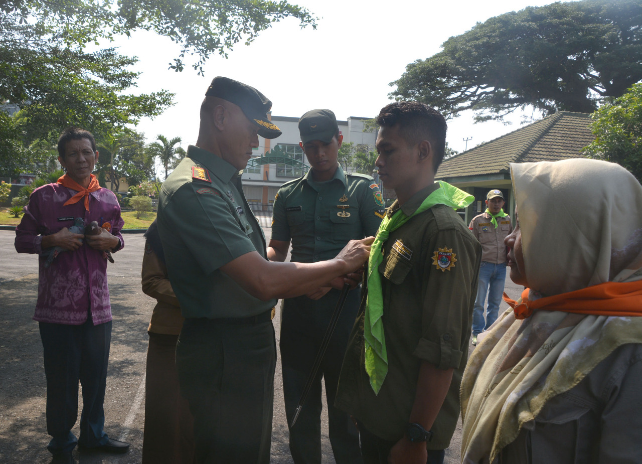 KARYANASIONAL.COM, Bandar Lampung_Komandan Korem 043/Gatam Kolonel KAV. Erwin Djatniko, S.Sos. melepas Mapala dari perwakilan Prov Lampung yang hendak berangkat ke Sumatra Barat, Jum’at (19/10/2018) selama 1 minggu.