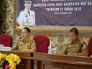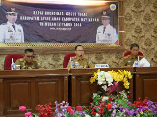 KARYANASIONAL.COM, Way Kanan_ Bertempat di Aula PKK Pemerintah Daerah Kabupaten Way Kanan, Sekretaris Daerah Kabupaten, Saipul, S.Sos.,M.I.P memimpin Rapat Koordinasi Gugus Tugas Kabupaten Layak Anak (KLA) Triwulan IV Tahun 2018, Selasa (13/11/2018).