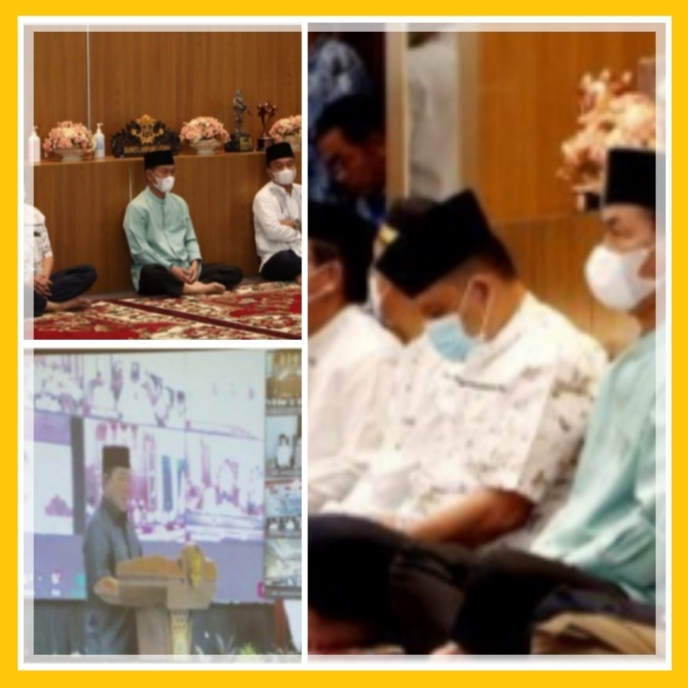 KARYA NASIONAL- Dalam rangka meningkatkan silahturahmi di Bulan Suci Ramadhan, Bupati Lampung Utara H. Budi Utomo, S.E., M.M., menghadiri peringatan Nuzulul Quran 1443 H/2022 M secara virtual dari Rumah Jabatan Bupati, Senin (18/04/2022).
