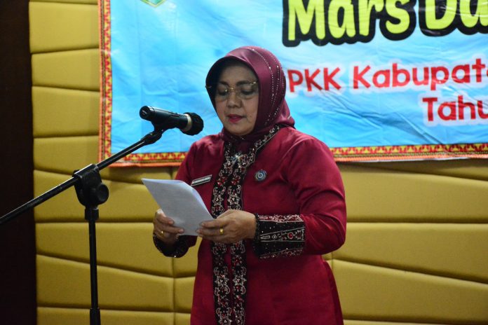 KARYANASIONAL – Ketua TP-PKK Kabupaten Lampung Tengah (Lamteng), Mardiana Musa Ahmad membuka lomba Paduan Suara Mars Dasawisma, di ruang BJW komplek rumah dinas bupati (Rumdisbup), Senin (13/06/2022).