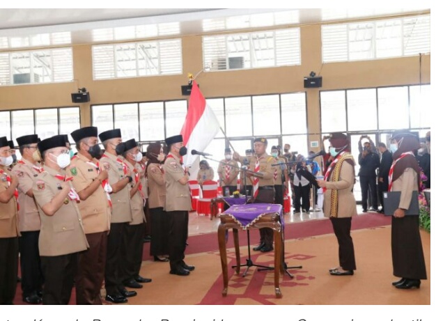KARYA NASIONAL – Ketua Kwartir Daerah (Kakwarda) Pramuka Provinsi Lampung, Cusnunia melantik Pengurus Mabicab, Kwarcab, LPK dan DKC Pramuka Kabupaten Way Kanan Masa Bakti 2021-2026, di Gedung Serba Guna (GSG)Pemkab setempat, Senin (13/06/2022).