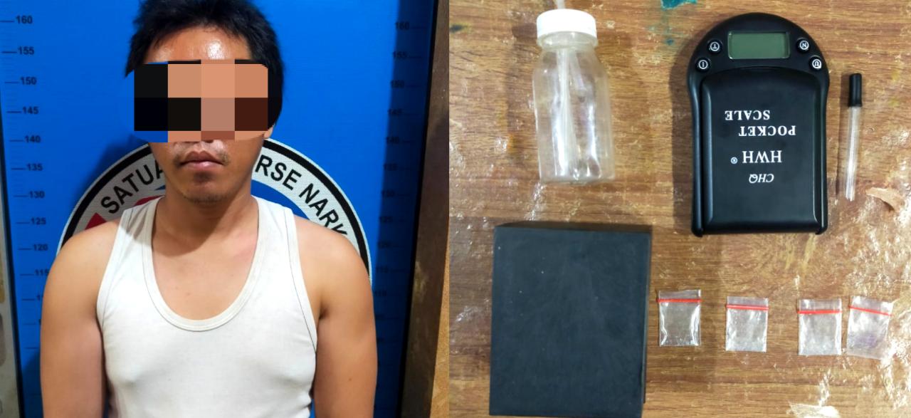 “Berbekal laporan warga tim opsnal Sat Res Narkoba bergerak menuju TKP untuk melakukan penyelidikan. Dari sejumlah informasi yang didapat petugas meyakini EL diduga sebagai penjual Narkoba jenis shabu-shabu, ” jelasnya.