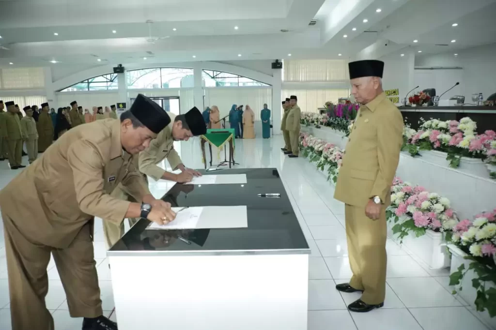 KARYANASIONAL – Bupati Asahan H. Surya, BSc didampingi Sekretaris Daerah Kabupaten Asahan Drs. John Hardi Nasution dan Asisten Pemerintahan dan Kesejahteraan Rakyat mengambil Sumpah/Janji dan melantik Pejabat Pimpinan Tinggi Pratama (PTP), Pejabat Administrator, Pejabat Pengawas di Lingkungan Pemerintah Kabupaten Asahan di Aula Melati Kantor Bupati Asahan, Rabu (18/01/2023).