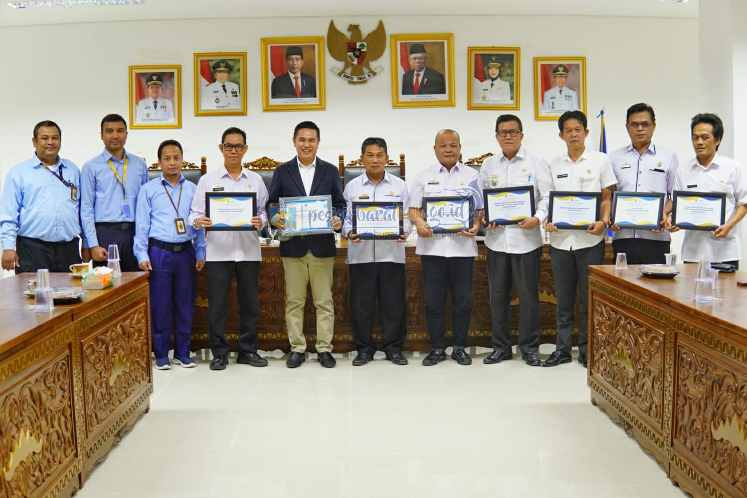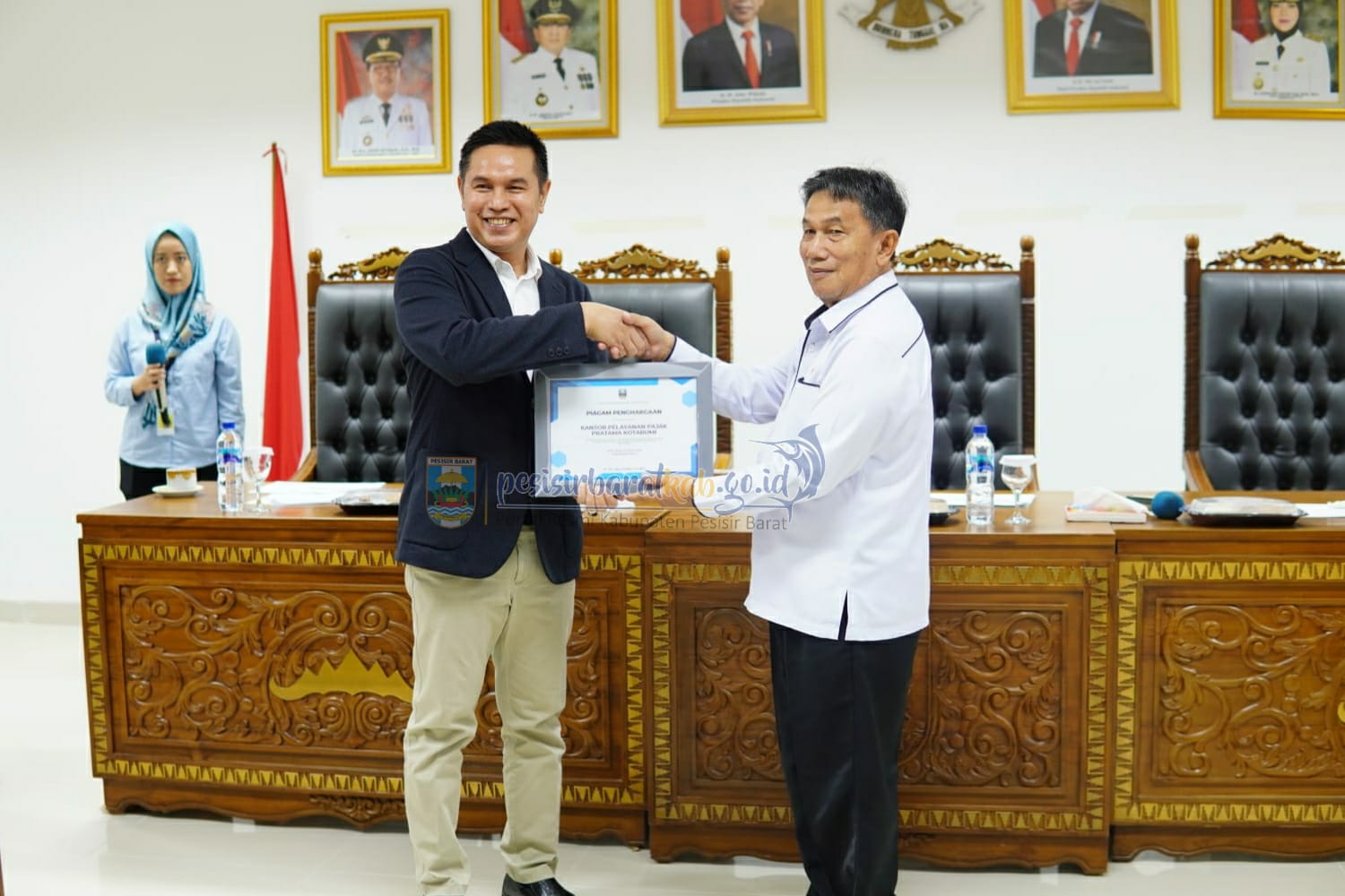 KARYANASIONAL – Bupati Dr. Drs Agus Istiqlal, S.H.,M.H. yang diwakili oleh Wakil Bupati A Zulqoini Syarif, S.H. yang dalam kegiatan ini menjadi perwakilan dari Pemerintah Kabupaten Pesisir Barat dengan didampingi oleh Plt. Sekretaris Daerah (Sekda) Ir.Jalaludin, M.P., menerima kunjungan kerja sekaligus penyerahan piagam penghargaan kepada Pemerintah Kabupaten Pesisir Barat atas “Dukungan dan Kerja Sama Yang Baik Dalam Rangka Pengamanan Penerimaan Pajak Tahun 2022” sebagai apresiasi atas capaian kinerja penerimaan pajak dan kepatuhan SPT Tahunan, serta atas integritas sebagai pemangku kepentingan yang bersinergi untuk membangun negeri pada sektor pajak dari Direktorat Jenderal (Dirjen) Pajak yang berlokasi di Komplek Perkantoran Pemerintah Kabupaten Pesisir Barat, Gedung A, Ruang Rapat Bupati Lantai 4.