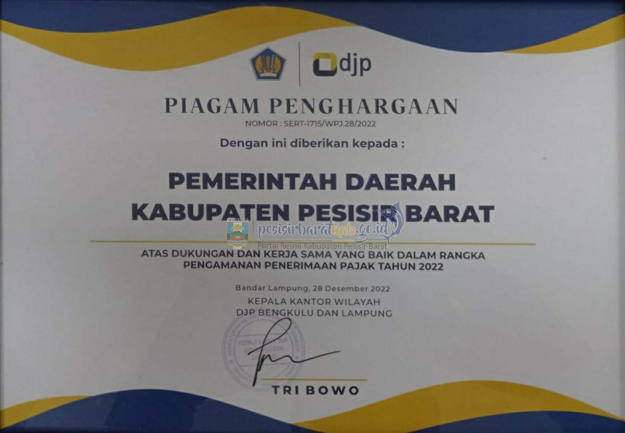 Pemkab Pesisir Barat Terima Penghargaan dari Dirjen Pajak