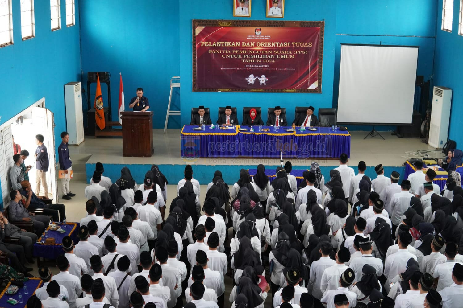 Hari ini, Selasa 24-01-2023 bertempat di Gedung Serbaguna (GSG) Selalau, Pekon (Desa ) Kampung Jawa Kecamatan Pesisir Tengah Krui,Para PPS yang dinyatakan lolos hasil seleksi dilantik oleh Ketua KPU Kabupaten Pesisir Barat Marlini, SH.I., M.A.