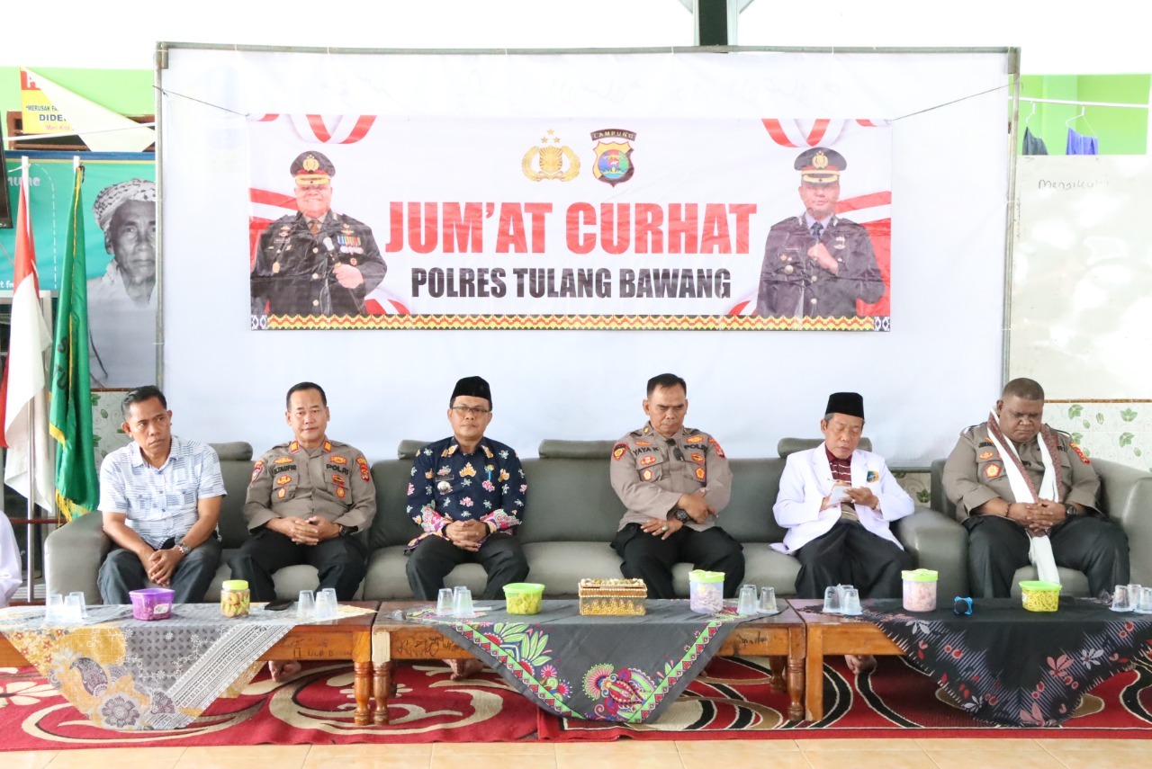 KARYANASIONAL.COM – Polres Tulang Bawang, Polda Lampung, menggelar kegiatan Jum’at curahan hati (Curhat) untuk mendengarkan langsung aspirasi atapun unek-unek dari warga masyarakat yang ada di wilayah hukumnya.