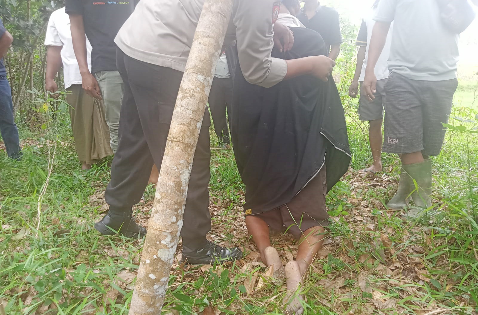 Polsek Banjar Agung Olah TKP Penemuan Mayat Tergantung di Pohon Jengkol