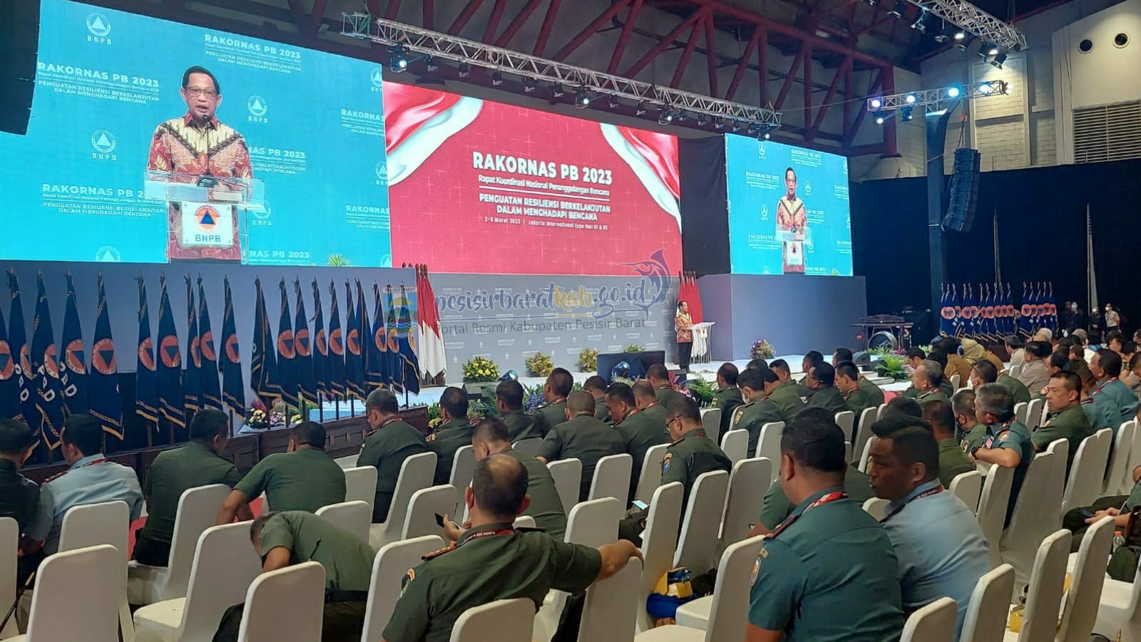 KARYANASIONAL – Pemerintah Kabupaten Pesisir Barat (Pesibar) yang dalam hal ini diwakili langsung oleh Bupati Pesisir Barat, Dr. Drs. Agus Istiqlal, S.H., M.H, mengikuti sekaligus menghadiri Rapat Koordinasi Nasional (Rakornas) Penanggulangan Bencana (PB) Tahun 2023 yang diselengarakan oleh Badan Nasional Penanggulangan Bencana (BNPB) Jakarta Internasional Expo.(02/03/2023)