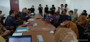 KARYANASIONAL – Pemerintah Kabupaten (Pemkab) Pesisir Barat (Pesibar), dalam hal ini diwakili oleh Plt. Sekretaris Daerah (Sekda), Ir. Jalaludin, MP. didampingi oleh Plt. Asisten 3 Bidang Administrasi Umum, Drs. John Edward M.Pd dan Plt. Kadis PMP (Pemberdayaan Masyarakat dan Pekon), Drs. Imam Habibudin, M.Si. menggelar audinesi dengan perwakilan dari Persatuan Perangkat Desa Indonesia (PPDI) Pesisir Barat selaku demonstran (pengunjuk rasa) bertempat di Ruang Rapat Sekda Gedung A Lantai 3, Komplek Perkantoran Pemkab Pesisir Barat. Audiensi ini bertujuan untuk menjawab keluhan para demonstran yang tergabung dalam PPDI terkait kejelasan waktu pembayaran gaji aparat/perangkat Pekon (Desa) oleh Pemkab Pesisir Barat, Senin (10/04/2023).