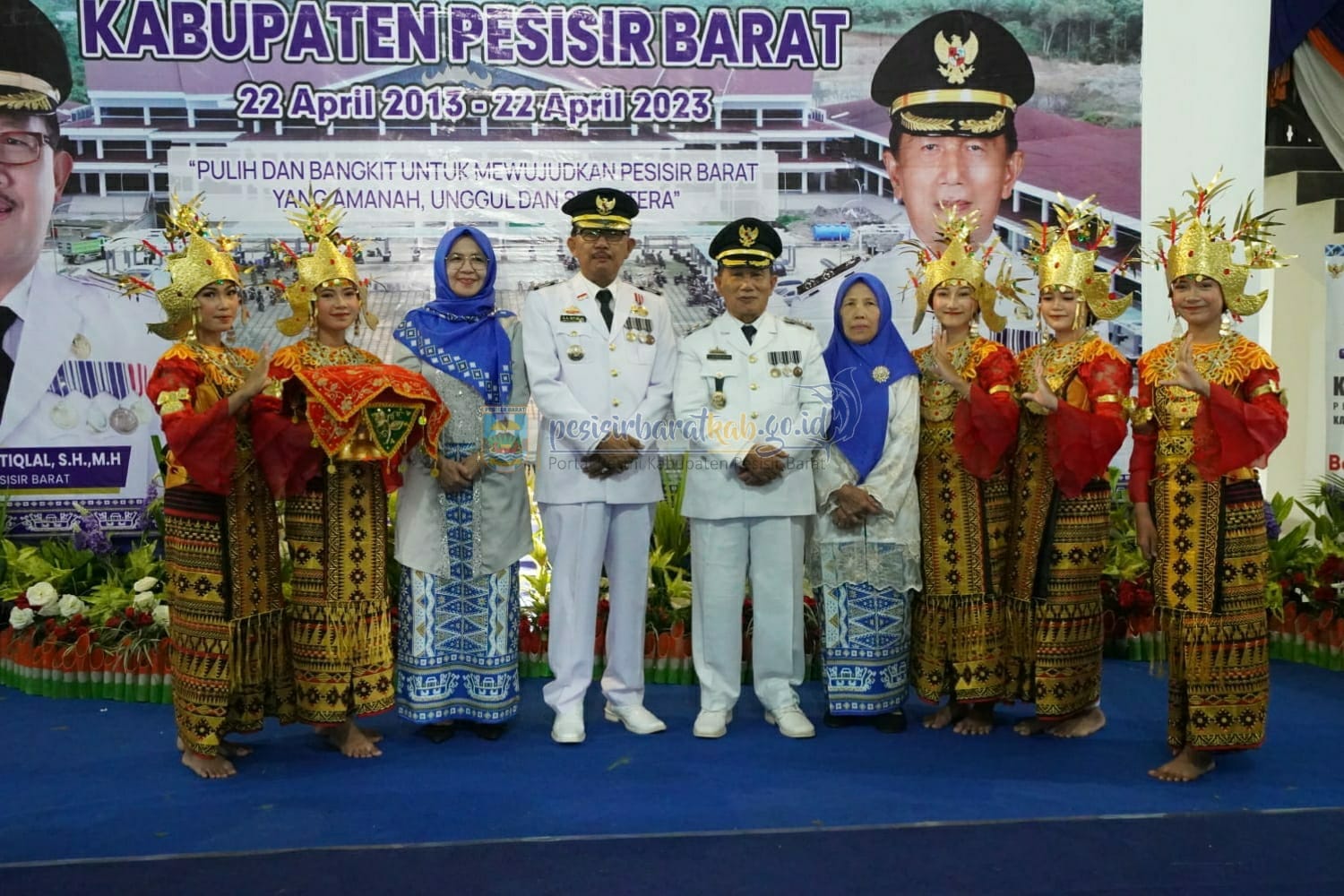 Dalam Sambutannya, Bupati Pesisir Barat menyampaikan bahwa dihari jadi Kabupaten Pesisir Barat yang ke-10 ini kita patut bersyukur dengan segala capaian-capaian yang selama ini lakukan, meskipun belum sepenuhnya sama dengan Kabupaten/Kota lain di Indonesia, kami (Pemkab Pesisir Barat) akan terus berusaha mengejar ketertinggalan tersebut.