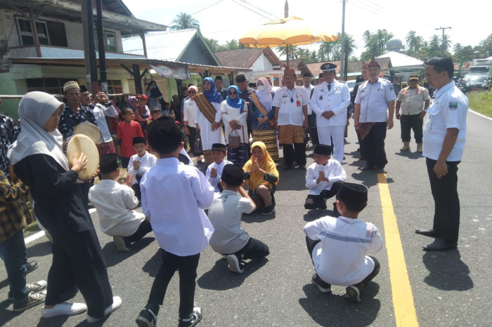 Sebelum tiba di lokasi kegiatan, Bupati Pesibar Agus Istiqlal bersama rombongan diarak menggunakan hadra dan atraksi pencak silat yang dipersembahkan langsung oleh masyarakat Pekon Sukajadi.