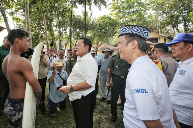 Gubernur Lampung Ir. Arinal Djunaidi saat membuka World Surf League (WSL) Krui Pro 2023, mengatakan, salah satu hal yang membuat Krui ini berprestasi di dalam pariwisata adalah karena orang Krui baik. “Saya sudah pernah coba minta teman saya meninggalkan handphone dan pulpen, bakal hilang atau enggak. Ternyata ada yang mondar-mandir menanyakan siapa pemilik handphone dan pulpen itu. Selamat untuk orang-orang Krui,” kata Gubernur Arinal.