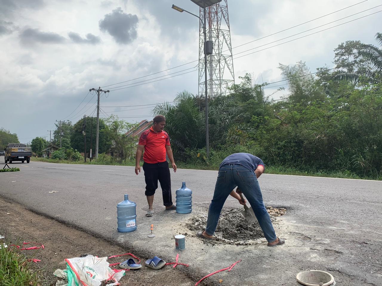 KARYANASIONAL, Mesuji – Komunitas panorama jalan yang ada di Kabupaten Mesuji terus bergerak lakukan perbaikan jalan rusak dan berlubang yang ada di jalan lintas timur.