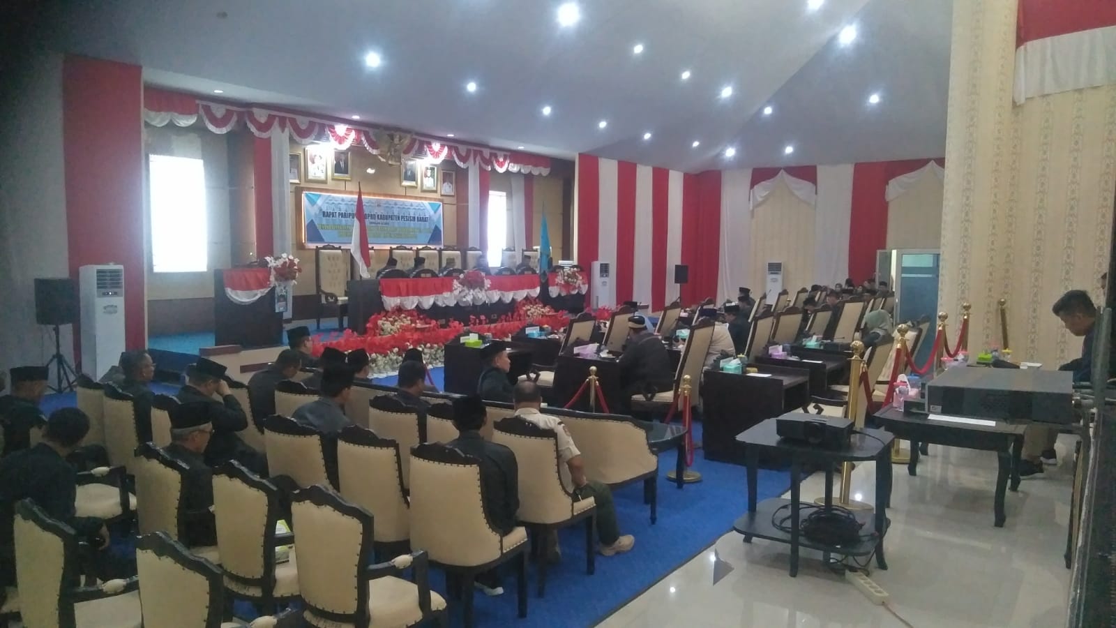 Rapat paripurna yang dihadiri 18 dari 25 anggota DPRD tersebut, dipimpin langsung Ketua DPRD, Agus Cik, S.Pd., dengan dihadiri para pejabat tinggi pramata, administrator, pengawas, dan pelaksana di lingkungan Pemkab Pesibar, dan forkopimda Pesibar-Lampung Barat.