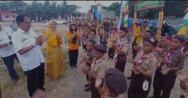 KARYANASIONAL, Pesisir Barat – Bupati Pesisir Barat (Pesibar), Agus Istiqlal, didampingi Ketua Kwartir Cabang (Kwarcab) Pesibar, Septi Istiqlal, dan para kepala Organisasi Perangkat Daerah (OPD), meninjau perkemahan pramuka di Lapangan Merdeka Labuhan Jukung Kecamatan Pesisir Tengah, Rabu (30/08/2023).