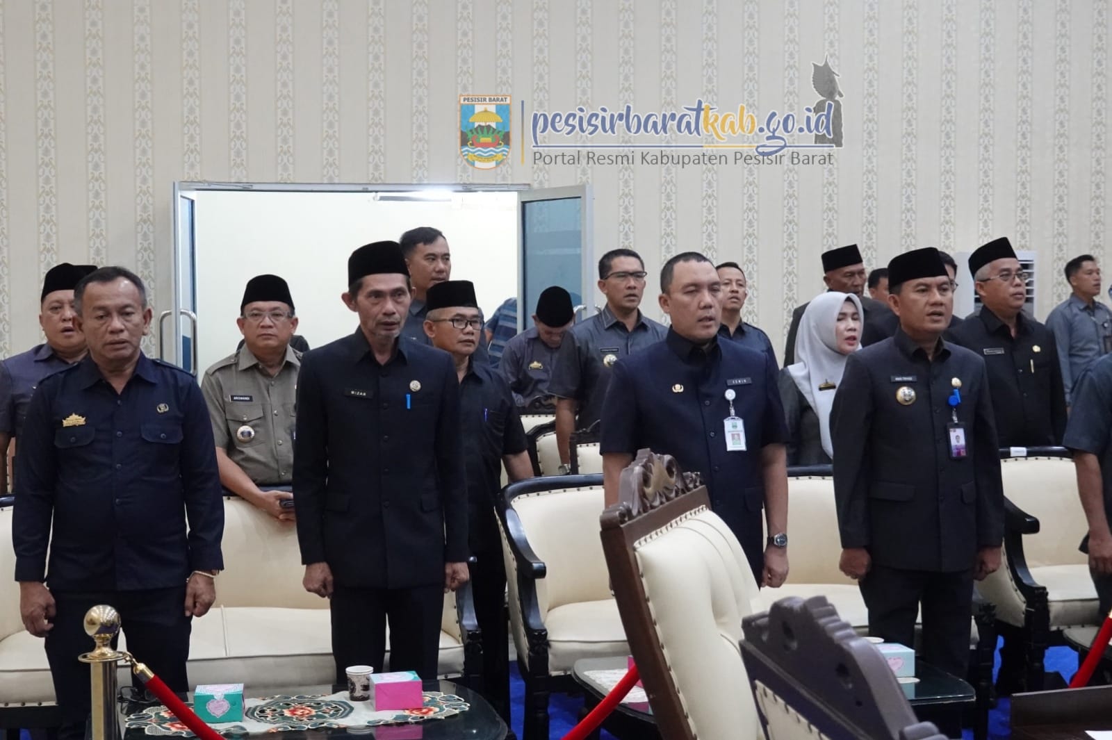 Rapat paripurna yang dihadiri 20 dari 25 anggota DPRD tersebut, dipimpin langsung Wakil Ketua II DPRD, Ali Yudiem, S.H, dan dihadiri Staf Ahli Bupati, Pejabat Tinggi Pramata, Administrator, Pengawas, dan Pelaksana di lingkungan Pemkab Pesibar, para Camat, dan forkopimda Pesibar-Lampung Barat (Lambar).