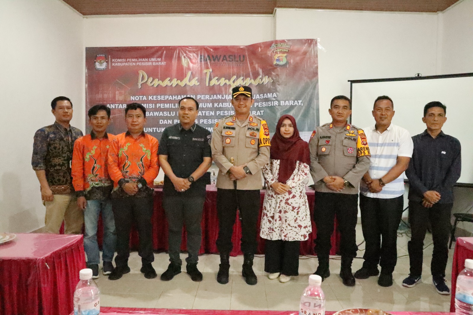 Kegiatan penandatanganan tersebut dilaksanakan langsung oleh Kapolres Pesisir Barat AKBP Alsyahendra, S.I.K,.M.H, Ketua KPU Kabupaten Pesisir Barat Marlini, SHi.MA dan Ketua BAWASLU Kabupaten Pesisir Barat ABD. Kodrat S, S.H., M.H.