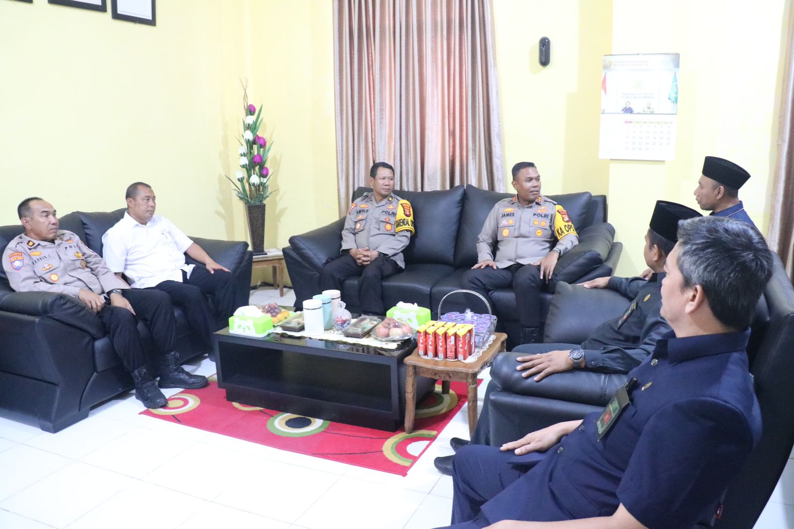 KARYANASIONAL – Kapolres Tulang Bawang, Polda Lampung, AKBP James H Hutajulu, SIK, SH, MH, MIK, bersama Pejabat Utama (PJU) Polres, dan Kapolsek Menggala menyambangi kantor Pengadilan Agama (PA) Tulang Bawang, di Kelurahan Menggala Selatan, Kecamatan Menggala, Kabupaten Tulang Bawang, Selasa (23/01/2024) sore.