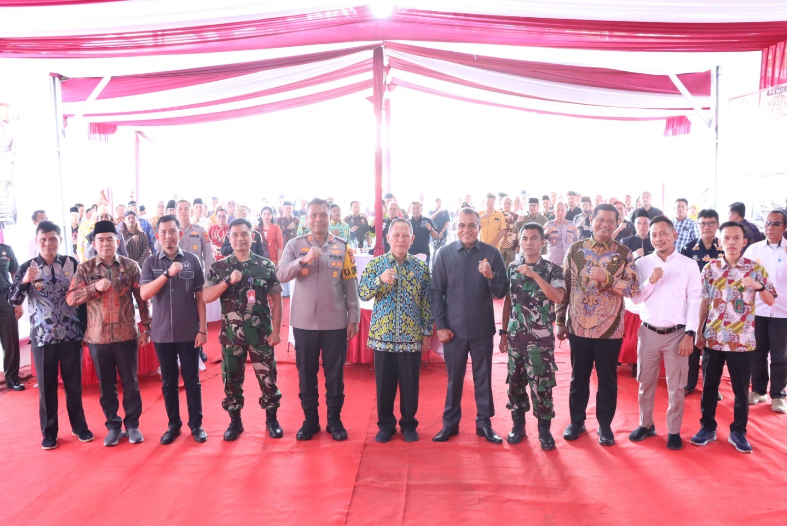 Kegiatan tersebut dihadiri langsung oleh Kapolres Tulang Bawang, AKBP James H Hutajulu, SIK, SH, MH, MIK, Pj. Bupati Tulang Bawang, Drs. Qudrotul Ikhwan, MM, Danlanud Pangeran M Bun Yamin, Letkol Pnb Yosi Hadi Wiyanto, Forkopimda plus, PJU Polres, serta para tokoh.