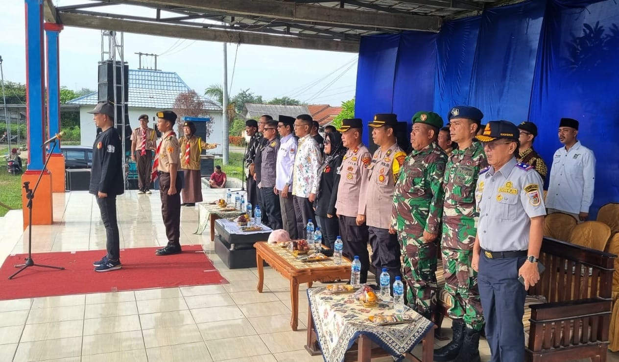KARYANASIONAL – Kabag Ops Polres Tulang Bawang, Polda Lampung, Kompol Abdul Mutolib, SH, mewakili Kapolres Tulang Bawang, AKBP James H Hutajulu, SIK, SH, MH, MIK, menghadiri apel siaga pengawasan masa tenang Pemilu 2024 yang berlangsung di Lapangan Ethanol, Kampung Tunggal Warga, Kecamatan Banjar Agung, Kabupaten Tulang Bawang, Minggu (11/02/2024) pagi.