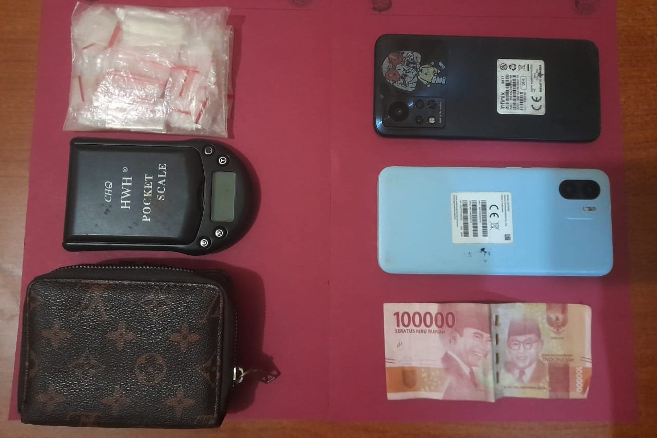 Lanjutnya, adapun barang bukti (BB) yang disita petugas kami yakni dari pembeli berupa plastik klip berisi narkotika jenis sabu dengan berat bruto 0,18 gram, handphone (HP) merek Infinix warna hitam, dan sepeda motor Honda Beat warna hitam, sedangkan dari bandar narkotika berupa timbangan digital, dompet warna cokelat, HP merek Xiaomi warna biru muda, plastik klip besar yang berisikan beberapa plastik klip kecil kosong, dan uang tunai sebanyak Rp 100 ribu.