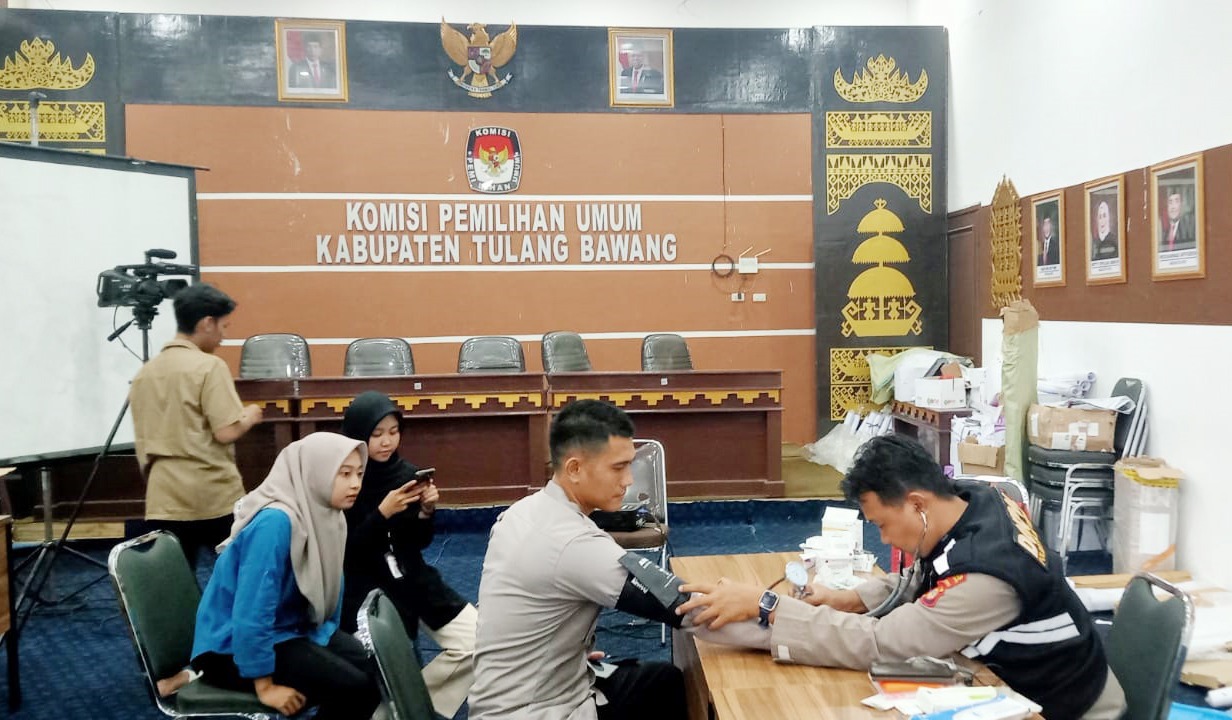 “Hari ini, personel kami yang dipimpin langsung oleh Ps. Kasi Dokkes, Aiptu Dwi Kurniawan, S.Kep, MH bersama tim Dokkes Polres menggelar bakti kesehatan gratis di kantor KPU Tulang Bawang,” kata Kapolres Tulang Bawang, AKBP James H Hutajulu, SIK, SH, MH, MIK.
