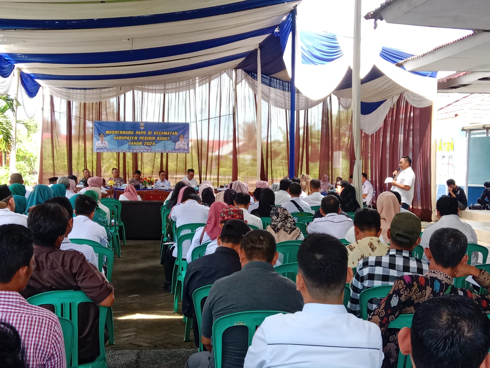 KARYANASIONAL, Pesisir Barat – Asisten III Bidang Administrasi Umum, Drs. Gunawan, M.Si., menghadiri hari terakhir pelaksanaan Musyawarah Perencanaan Pembangunan (Musrenbang) Rencana Kerja Pemerintah Daerah (RKPD) tingkat kecamatan Tahun 2024 untuk penyusunan RKPD Tahun 2025, di Halaman Kecamatan Pesisir Tengah, Kamis (22/2/2024).