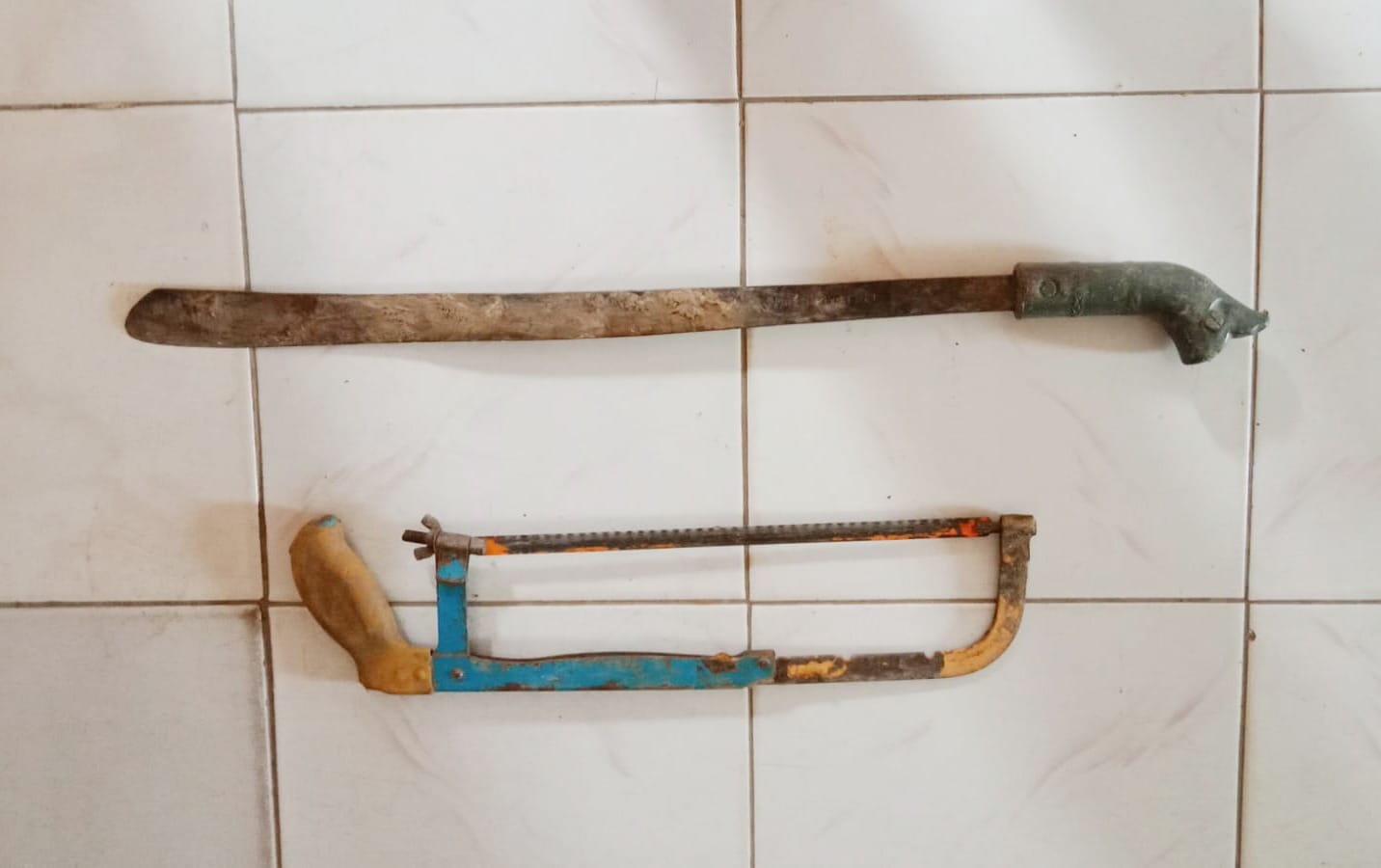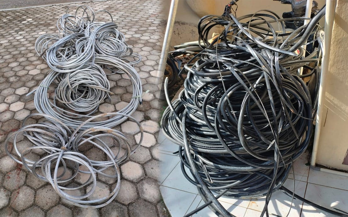 Lanjutnya, dari tangan para pelaku disita barang bukti (BB) berupa 10 gulung isi kabel yang terbuat dari aluminium, 10 gulung kulit kabel warna hitam, sepeda motor Yamaha Jupiter warna merah hitam tanpa plat nomor, sepeda motor Honda Beat warna hitam tanpa plat nomor, sepeda motor Honda Beat warna putih tanpa plat nomor, obrok warna kuning, senjata tajam (sajam) jenis golok, dan gergaji besi.