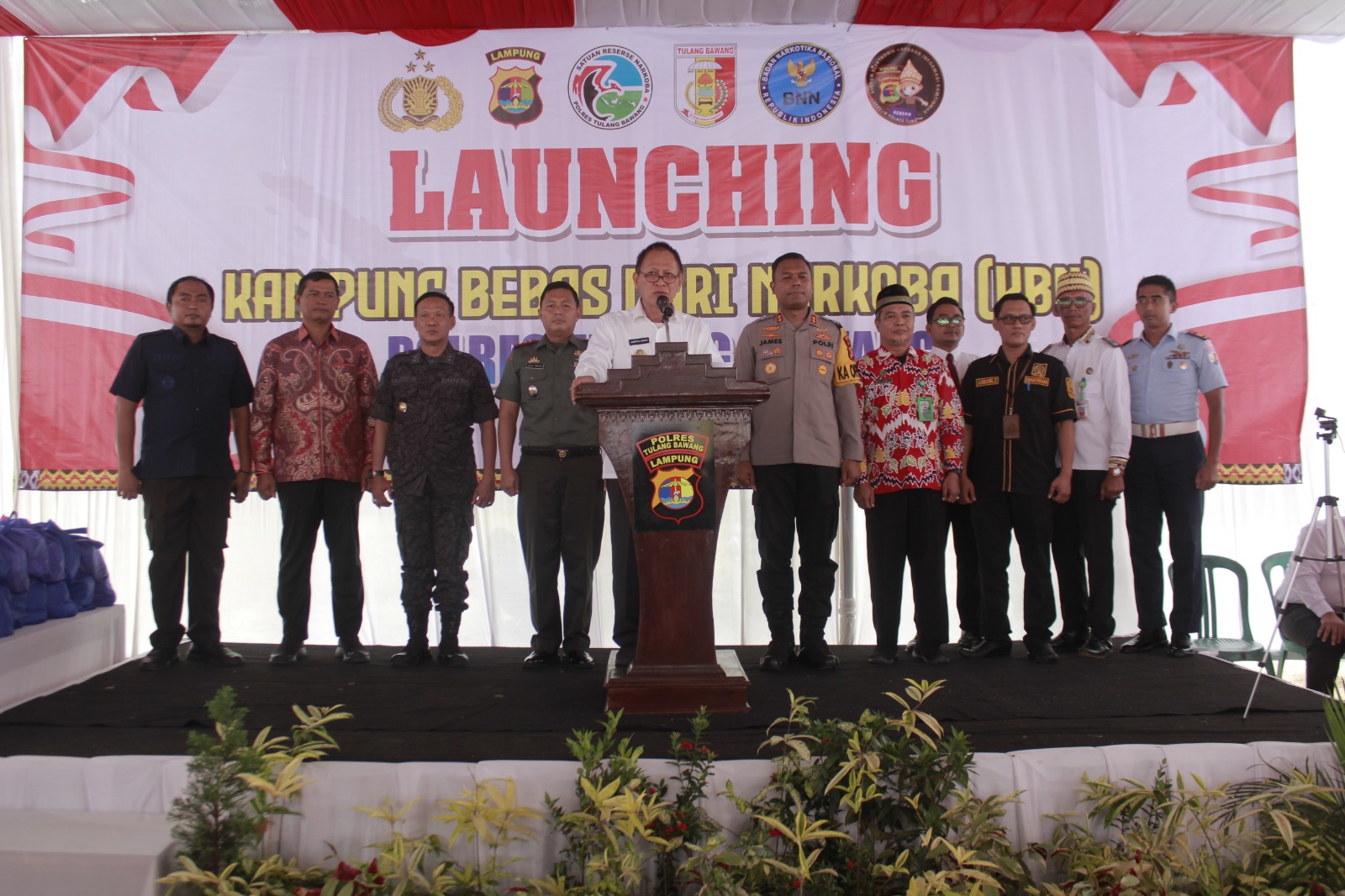 KARYANASIONAL – PJ Bupati Tulang Bawang Drs. Qudrotul Ikhwan, MM. menghadiri acara launching Kampung Bebas Dari Narkoba (KBN) Polres Tulang Bawang, di Posko KBN Kampung Ujung Gunung Ilir, Kec. Menggala, Rabu (13/3).