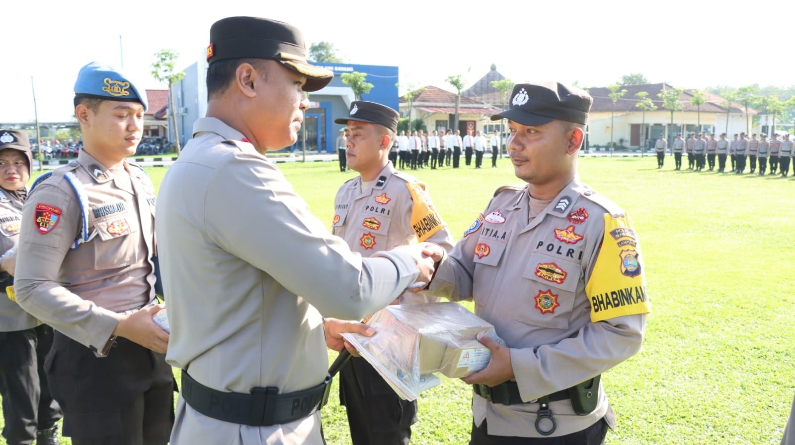 “32 personel Bhabinkamtibmas yang mendapatkan HP Motorola Lex 11A adalah mereka yang masuk dalam rangking penilaian keaktifan dalam pelaporan melalui aplikasi Binmas Onlines System (BOS) Versi 2. Aplikasi ini langsung terpantau dan dimonitor secara rutin oleh pimpinan dari Mabes Polri dan Polda Lampung,” papar perwira peraih Adhi Makayasa Akpol 2004.