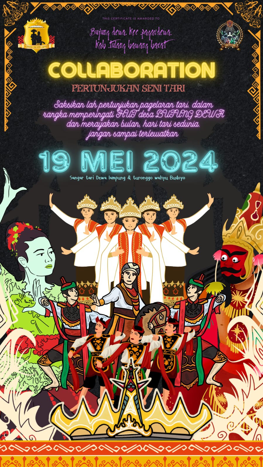 Kepala Tiyuh Bujung Dewa mengatakan bahwa pada peringatan HUT Tiyuh akan menapilkan Seni Budaya Jaran Kepasng atau kuda lumping dan juga ada penari dari Sangar Dewa Lampung Bujung Dewa.