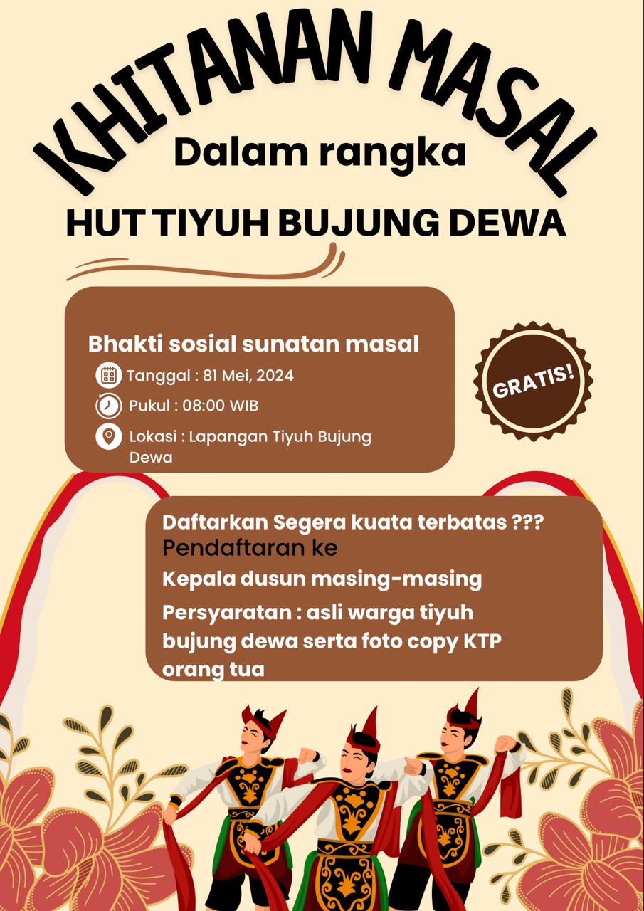 Selain itu ada juga bakti sosial yakni sunat masal kepada Warga Tiyuh Bujung Dewa sendiri dan dana ditanggung oleh Kepala Tiyuh.