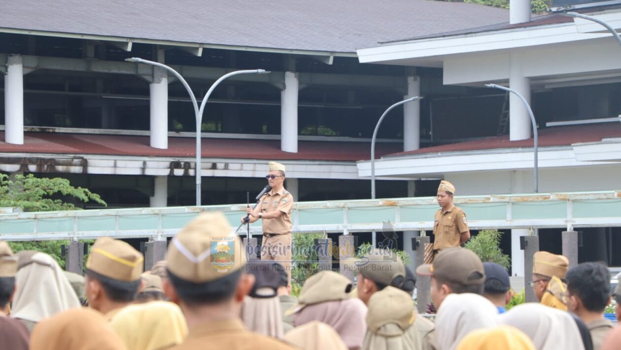 Apel tersebut dipimpin oleh Asisten II Bidang Perekonomian dan Pembangunan, Drs. Zukri Amin, M.P., yang bertindak sebagai pembina apel mewakili Bupati Pesisir Barat, Dedi Irawan.